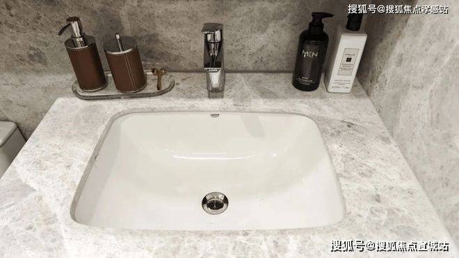 卫浴空间同样出色,采用高仪品牌的台盆、龙头、智能马桶、淋浴花洒等,主卫特别定制了“美妆冰箱”,满足业主对美妆、护肤用品冷藏的需求,体现了开发商对品质的追求。
