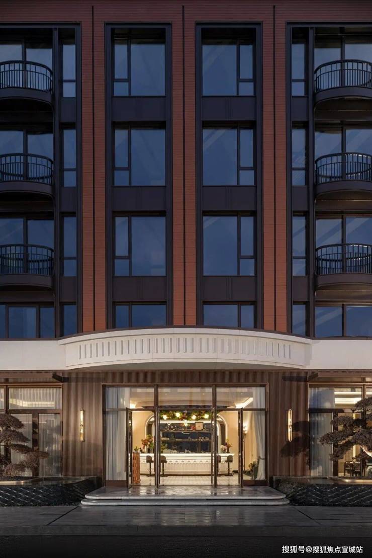 比如这幅外立面,你能看到海派标志性的红色,并针对经典海派建筑元素中的山墙、外飘阳台、石材窗套、基座分段等都精心做了转译。
