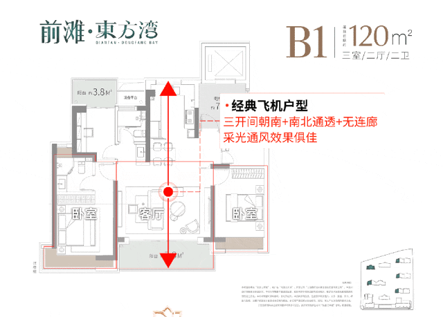 主卧+北次卧带270°转角飘窗,实得率+视野俱佳。