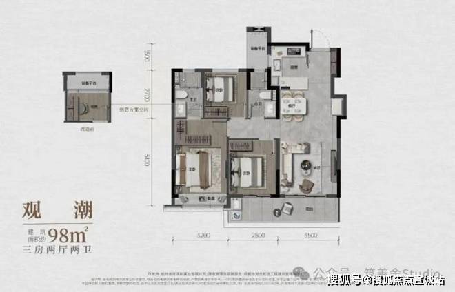 98㎡的三房户型,南向9.5米宽景面,双开间阳台尽揽风光,全明格局无暗角。这个户型虽小,收纳力很惊人:S墙玄关柜、主卧独立衣帽间,总收纳空间达11743L(相当于147个28寸行李箱),让生活井然有序。