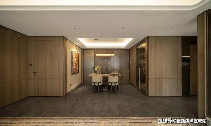 整个入户、客餐厅等区域均采用大面积木饰面装饰,自然的木质纹理给予了空间自然的感受,提供了松弛感的生活环境。