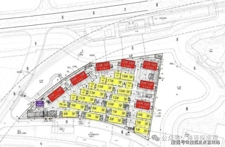 地块占地面积约4.94万平方米,容积率2.3,建筑面积约11.37万平方米,其中,住宅面积约10.12万平方米,中小套户型占比不低于30%,装修标准不低于2500元/m²根据设计方案显示,项目拟建2栋24层、5栋26层高层住宅,6栋4层多层住宅及18栋低层住宅,预计将推出高层、叠加、联排等多种产品形态。高层住宅沿地块西、北、东三侧分布,靠近崧泽大道,多层及低层住宅则位于地块中心区域,形成错落有致的天际线。项目三面环水,周边规划沿河绿地,营造出独特的"半岛式"居住氛围。社区地面没有停车位,全部人车分流,高层住宅首层架空,小区有集中绿地等景观架构。生活配套:
