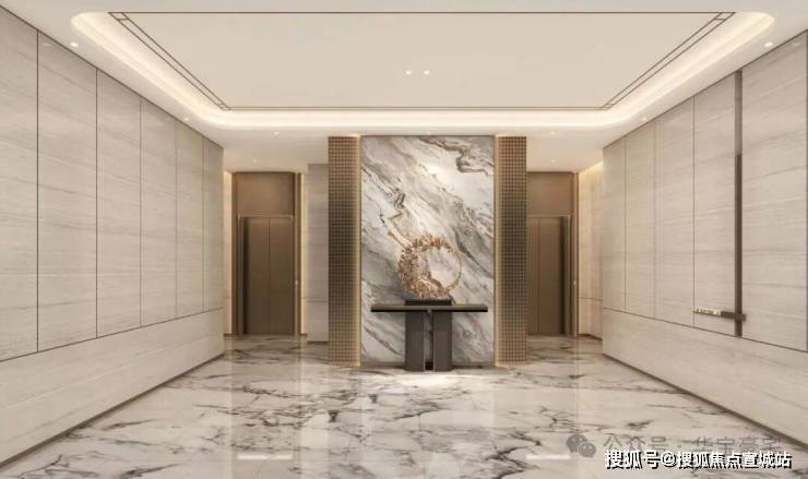 建筑设计:融合现代建筑美学与东方文化精髓,外立面采用流线型设计。基座层采用蓝金沙岩板干挂,主体层是香槟金铝板幕墙搭配无框开敞阳台,窗墙比达 35%,顶部层的坡屋顶挑檐植入白玉兰雕花。