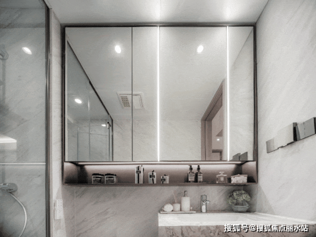 还有专为女性设计的卫生间,配备了镜下收纳柜、金属收纳龛、侧面收纳龛等多处大容量收纳空间。