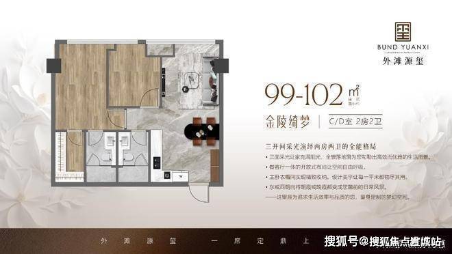 户型面积98-110平米,外滩之畔,金陵东路,豪华不限购公寓