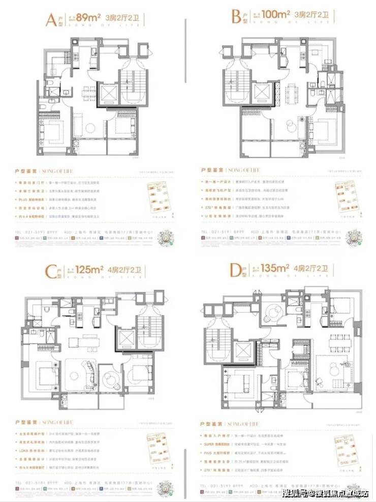 户型:提供建面约 74-143 平方米的二至四居室,部分热门户型如下: