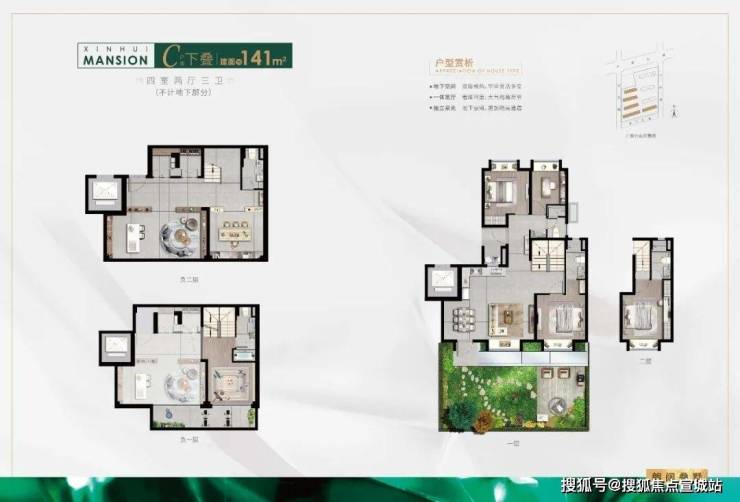 叠墅:有 105-134㎡等多种户型,包含 134㎡的底叠、131㎡的中叠、105㎡的平层和 126㎡的顶复等。
