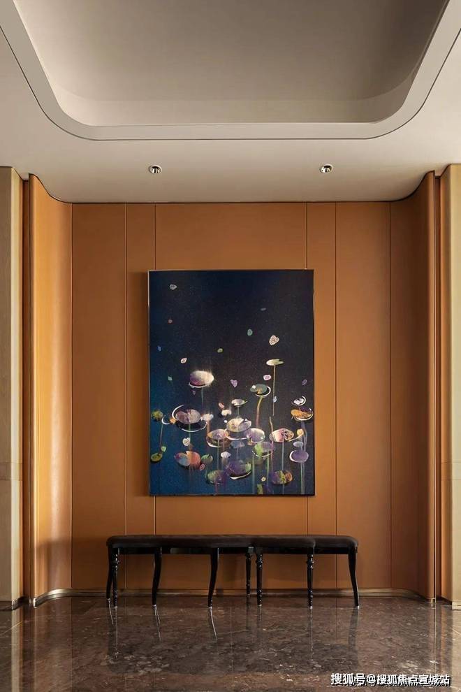 “海派”风格中西兼容,调和莫奈《睡莲》灵感的艺术画作与长凳坐面刺绣图案纹样。挂画用变色颜料涂绘,在不同角度下传递出迥异的色彩效果,将多元质感及艺术肌理的独特美感予以突显。