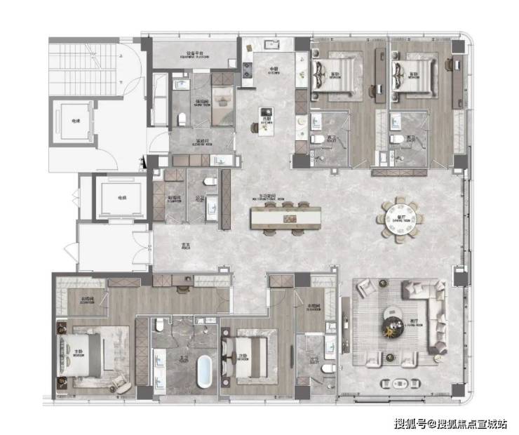 梁志天&上海世尊共同执笔:410㎡湾潮户型:WSD上海世尊团队执笔,以独一无二的“摩登东方”设计语言,抽象提取东方写意精神,与复古摩登、自由艺术平衡相融,领潮钱湾黄金时代。
