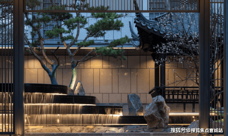 天朗气清时,水墨色与美国白金石的金绿辉映,交织出一种奢华但又深邃的沉静感。保证绝对的隐私性和生活品味。台阶、格栏、水系、亭台、树柏,层层递进,涵雲軒在追求美学的同时,做出了真正意义上的“隐奢”入口。外界无法一眼窥尽全貌,更添高门大户之神秘感。