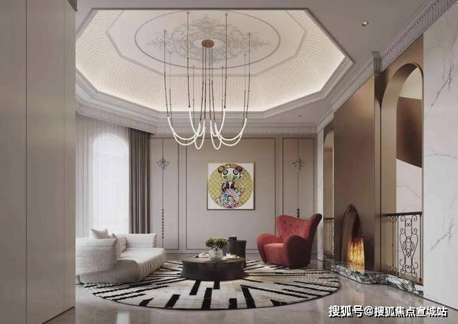 影音室的设计则为业主带来了如同置身星空之下的奇妙体验,华丽的法式雕刻墙以及独特的法式壁炉为客厅增添了一份法国的浪漫与高贵。而卧室中,以山水画为背景,提供了一个宁静而舒适的休憩空间。