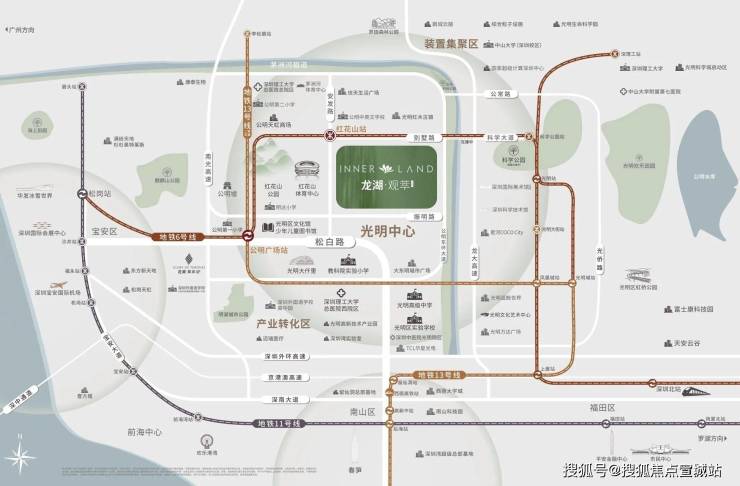 作为光明中心惟一双轨交汇,6号线带领光明融入深圳核心发展脉络,13号线二期(在建中)即将正式通车,将高效接驳南山,加速科创人才及城市资源向中心集聚,执掌光明未来。