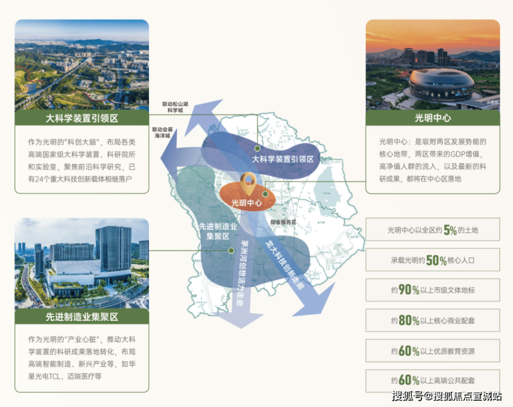 项目一平方公里范围内聚集光明历史,商业、生态,文体、交通五大城市群中极核资源。