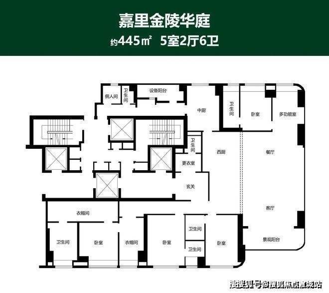 二期大约是360㎡、445㎡两种面积的户型为主,同样在顶部两层做了四个大平层户型。标准层层高同一期持平,也是3.3米。