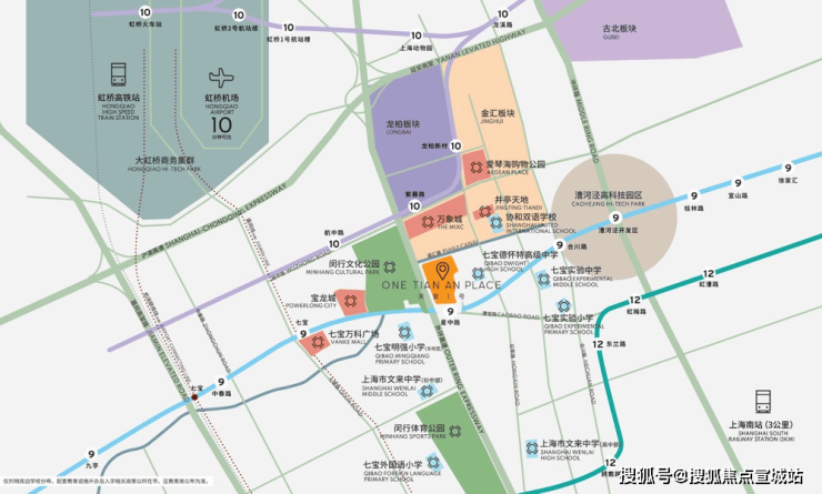天安豪园二期推广名『天安1号』项目位于漕宝路地铁9号线星中路站,临近10号线紫藤路站。项目规划地下商业连通地铁,5站即达徐家汇,约10分钟即达上海虹桥国际机场。
