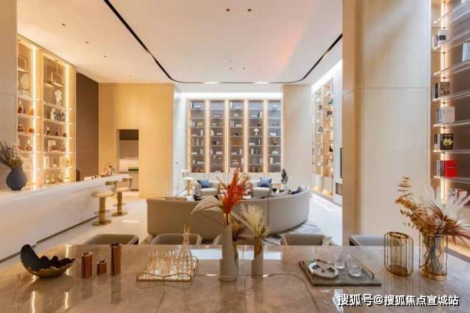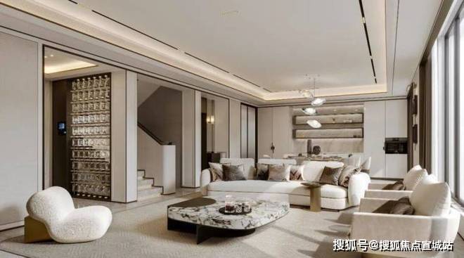 一层是会客区,约10.7米的超大面宽,阳光、空气可以“肆意”穿过,室内通透明亮。