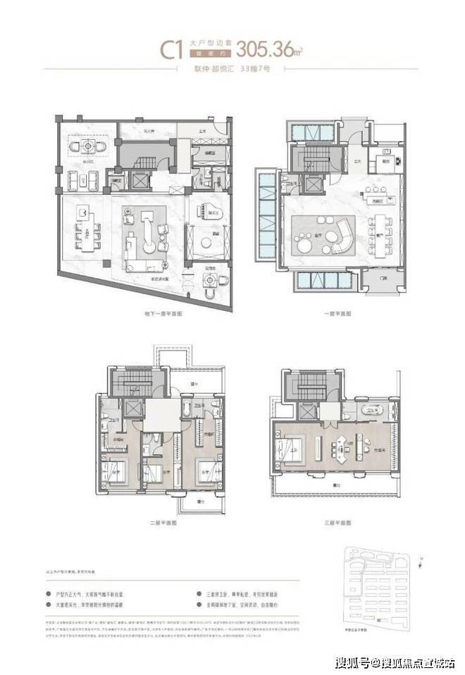 在售户型:建面约310-410平米,地上三层地下一层