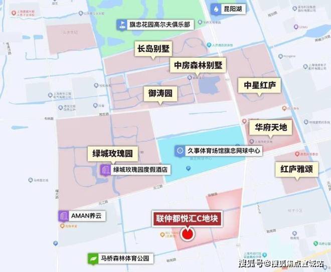 【联仲·都悦汇】位于闵行马桥旗忠别墅区,旗忠别墅区是上海老牌的富人区,与松江佘山、浦东东郊齐称为沪上三大国际别墅区。上海仅存少量的容积率0.18以下超低密度居住用地中,大多数在马桥旗忠别墅区。