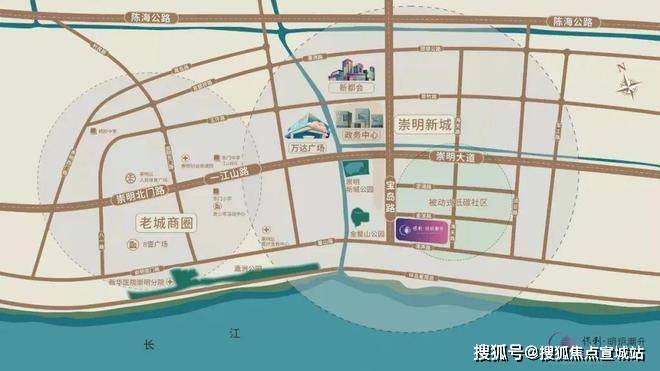 【行政中心】崇明新城,崇明区政府所在地,布局崇明政府/行政服务中心、崇明会议中心、广电中心、规划展示馆、科技文化中心、美术馆、图书馆、崇明法院等政府重要职能部门。