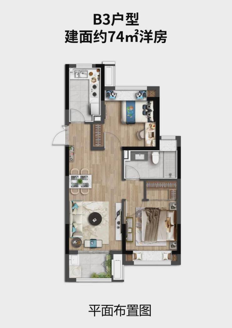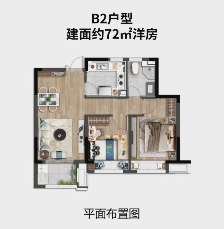 洋房:总高 8 层,1T2H/2T4H,建面约 72-91㎡,三房两卫设计,得房率约 78%,精装交付。