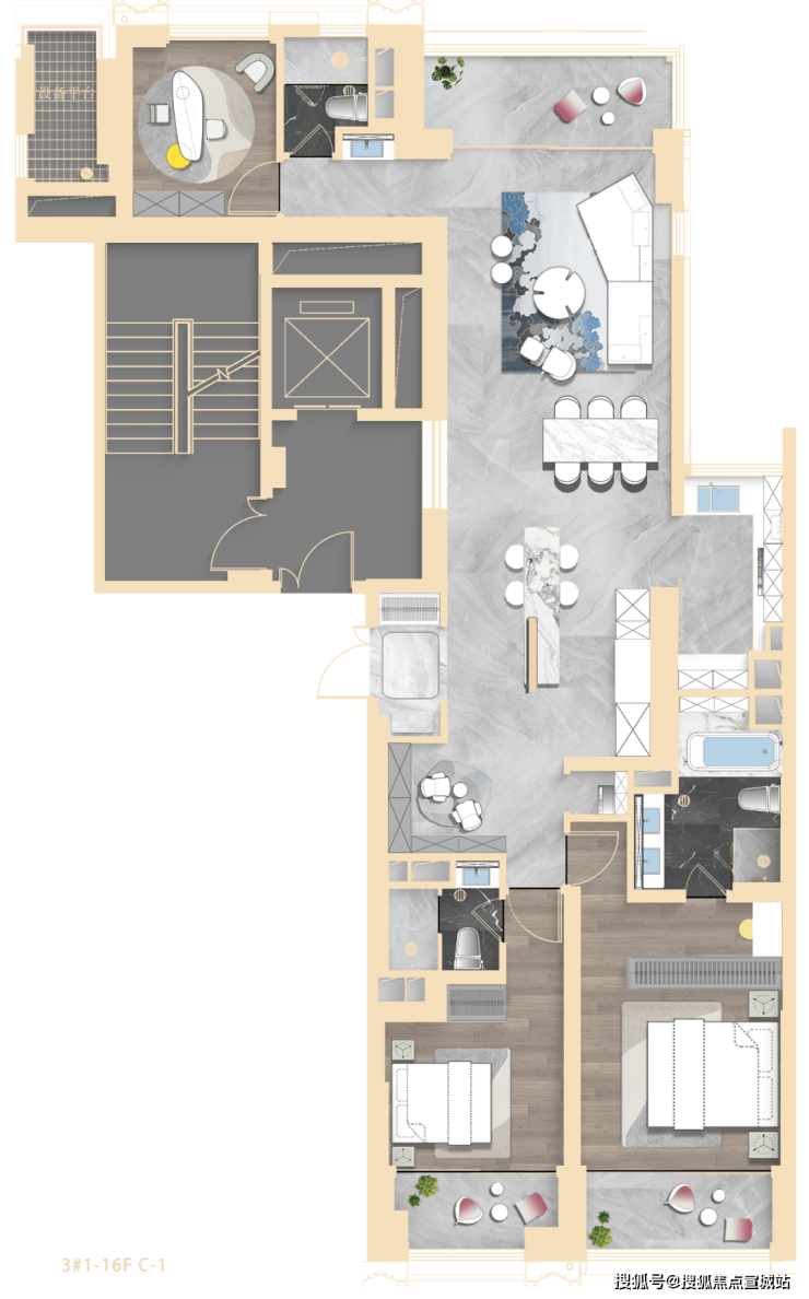 尤其主卧星级套房,配置独立衣帽间、书房,奢华主卫四分离,双台盆+淋浴区+大浴缸+智能马桶,私密性&奢适度无敌;