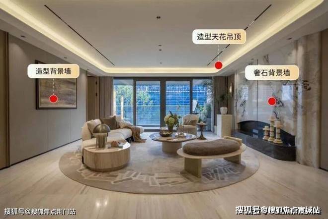 装修方面定制装甲门、奢石背景墙、大理石、造型背景墙、造型天花板等,整体含石量很高。甚至全屋wifi、电动窗帘机都装好了。