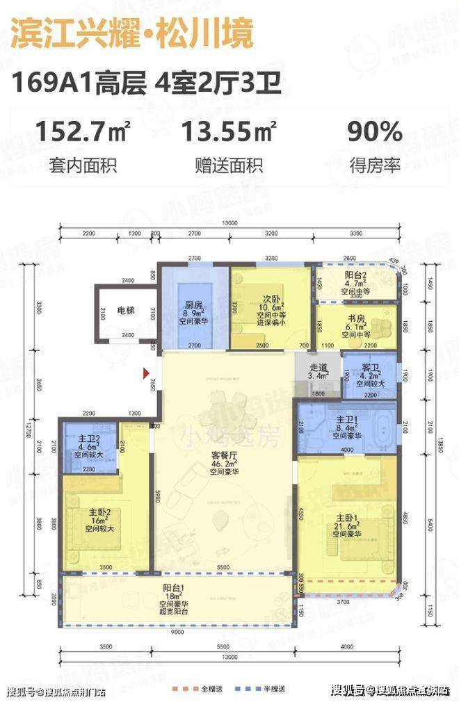 高层规划建面约169-199方的户型段保障了圈层纯粹,这个户型段过去几年来供应的新房户型差异性都非常小。