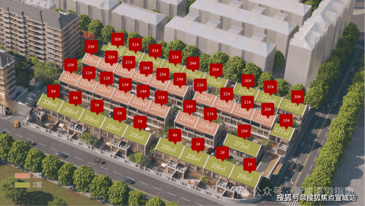 2) 基于低容积率地块禀赋,打造“超大面宽+南北大花园+高窗墙比+高附赠”花园别墅,更具质感的思南公馆同款卵石立面,鼎流产品力在市场断层式领先!