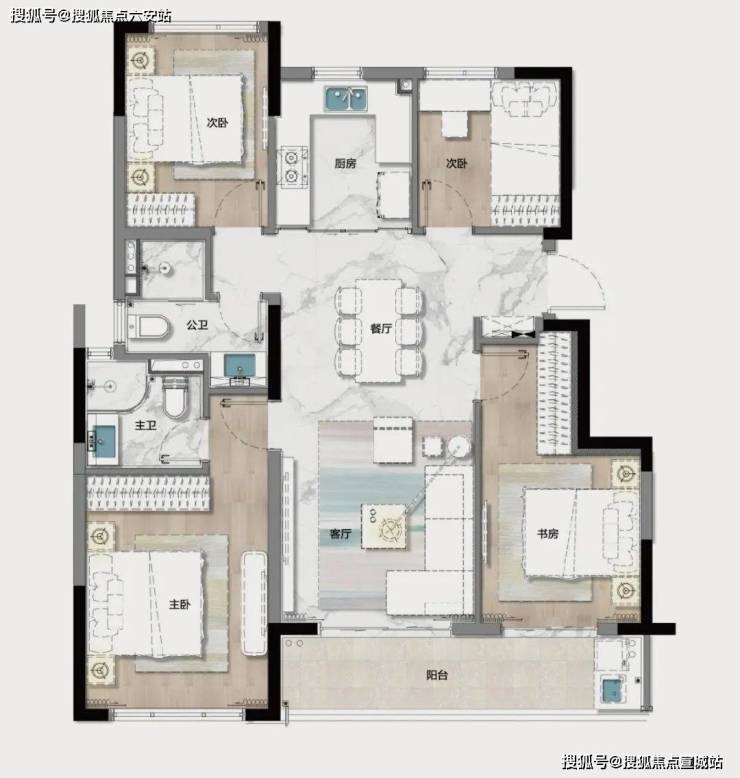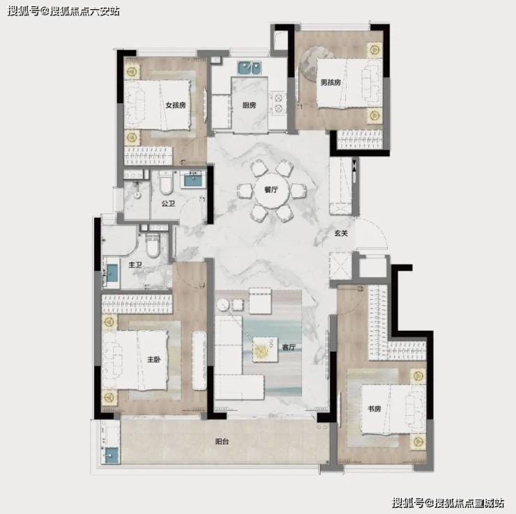 华元华昭府的户型设计灵活多变,满足不同购房者的需求。项目主力户型为建面约136平方米的精装小高层,采用经典四叶草户型设计,约10.3米面宽,约7.3米南向阳台的136㎡四房,几乎是以刚需的总价就可满足改善的需求。