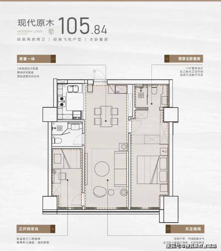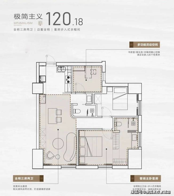 户型设计上,打破公寓常规暗间的局限,项目全部设计成全明2房或3房格局,做到没有一个暗间的居住空间,并全系标配主卧套房+双卫配置,提升居住配置。