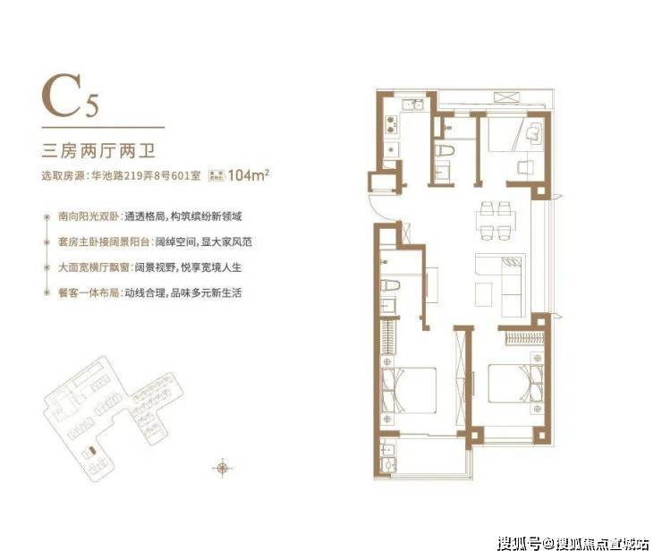 户型设计灵动,目前开放了104㎡3房2厅2卫和103㎡3房2厅2卫样板间,可谓是各有看点: