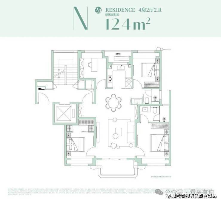 约153㎡户型设计:极致观景,西瞰江景,东瞰园景!4房功能齐备!