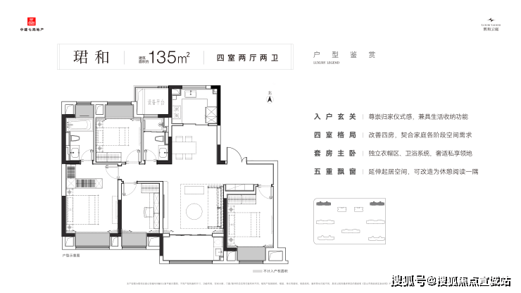 户型信息:主推建面约 98-143㎡的三至四房,还有建面约 135-224㎡的大四房户型,采用 LDKB 一体化空间设计,得房率高达 82%。