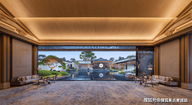 园林:三进式院落布局,结合《西园雅集图》场景设计,配套70米宽中式大门、禅意水苑等