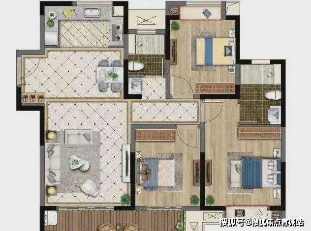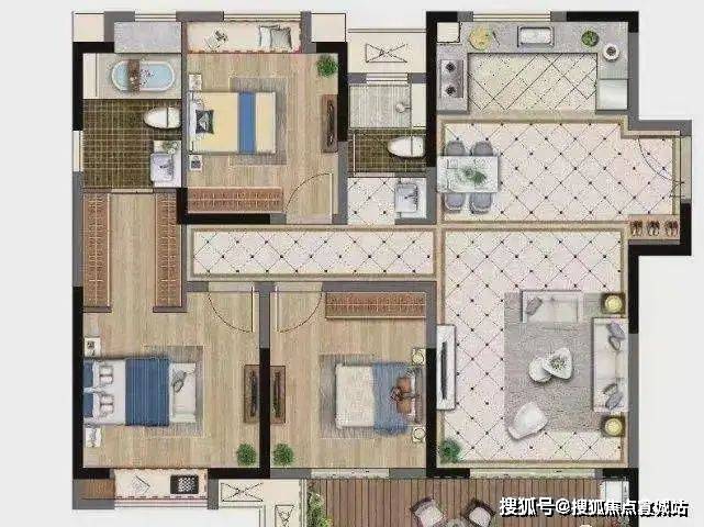 114平,3房2厅2卫(三开间朝南,双开间大阳台)