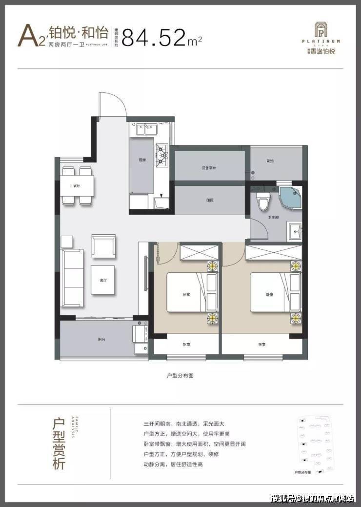 主力户型:建面约 80-89㎡的两室两厅一卫,全明格局;建面约 94-110㎡的三室两厅两卫,双开间阳台。
