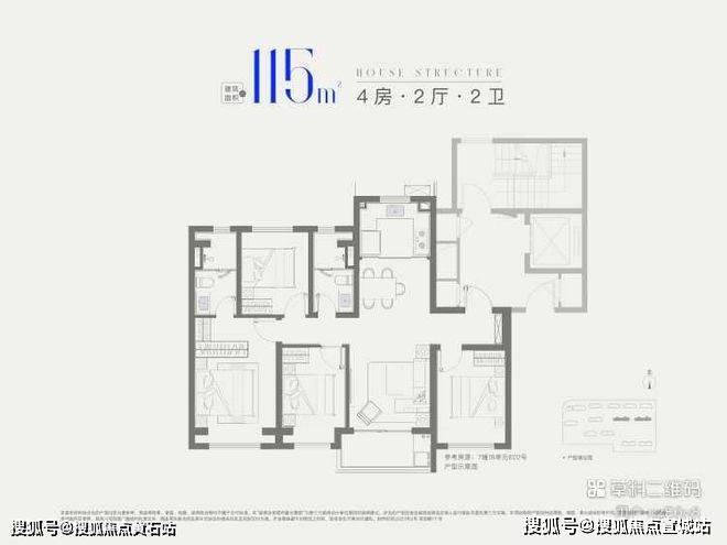 115㎡四房两卫(四期):总价500万起,一梯两户,四开间朝南(三房+客厅朝南),南北通透,奢阔空间尺度,适配多子女家庭或三代同堂。