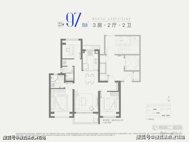 97㎡三房两卫(三期):总价405万起,一梯两户(无连廊),南北通透,三开间朝南+观景阳台,主卧套房设计,满足改善型家庭品质生活需求。