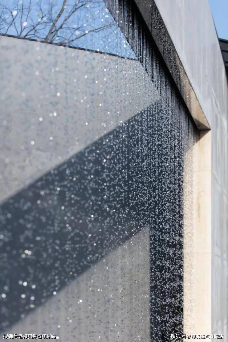 镜面水景倒映着建筑的倩影,水面与建筑融为一体。人们踱步经过,从水景侧边的镜面不锈钢中,不断看见自己的身影,趣味十足。黑色的池底,仿若一方墨池,呼应绍兴后马八景之一的“趣园墨池”。景观雕塑仿照绍兴柯岩云骨之形,静于水面,正气凛然。