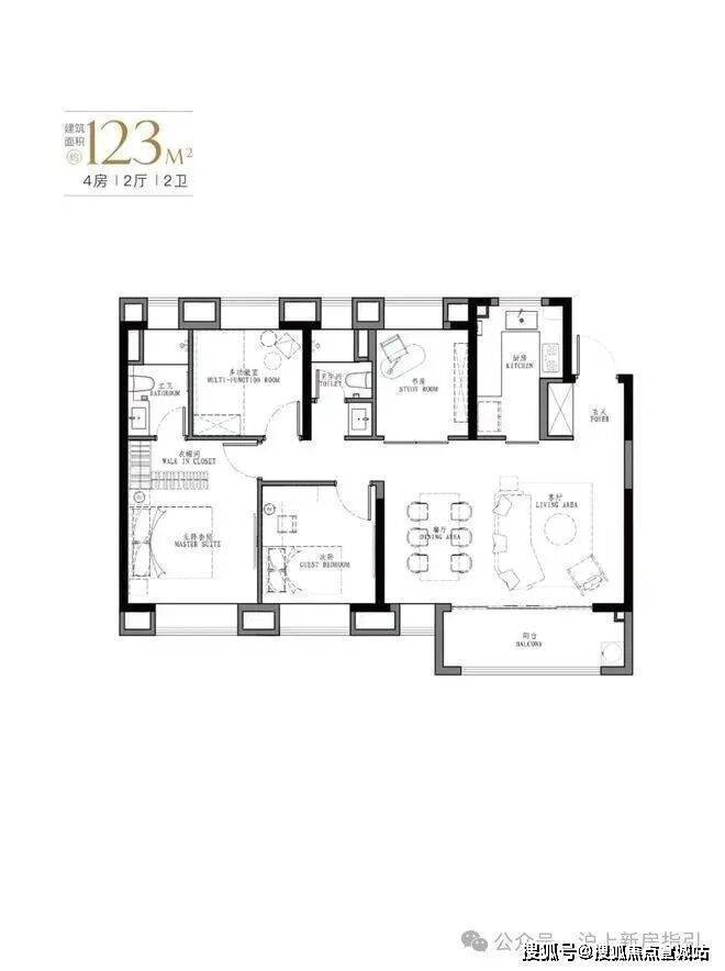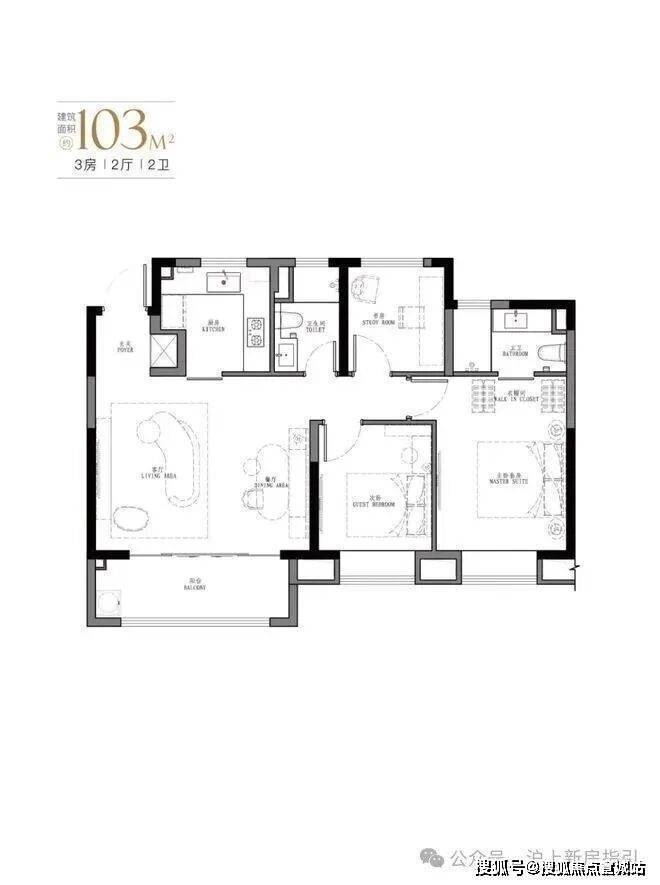 产品:103㎡、107㎡的三房两厅两卫及123㎡、129㎡的四房两厅两卫。