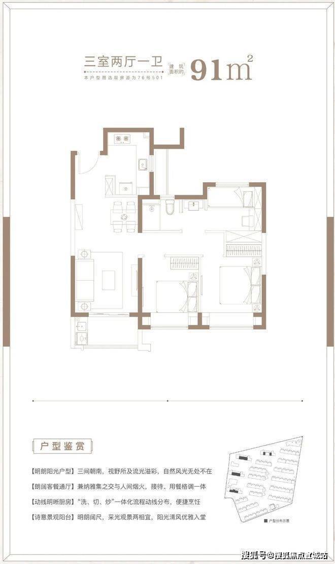 建面约91㎡3房2厅1卫户型,做到了三开间朝南+双朝南卧室带飘窗+动静分离+卫生间干湿分离,采光面拉到极致的小3房户型。嘉定大华·梧桐樾售楼处电话/地址☎:400-8778_334√√(售楼中心电话) 营销中心电话/位置☎:400_877-8334(看房专线)√√