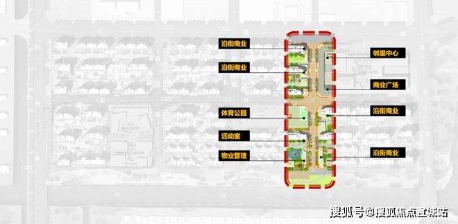 一轴:幼儿园、体育公园、快递驿站、文化活动空间等