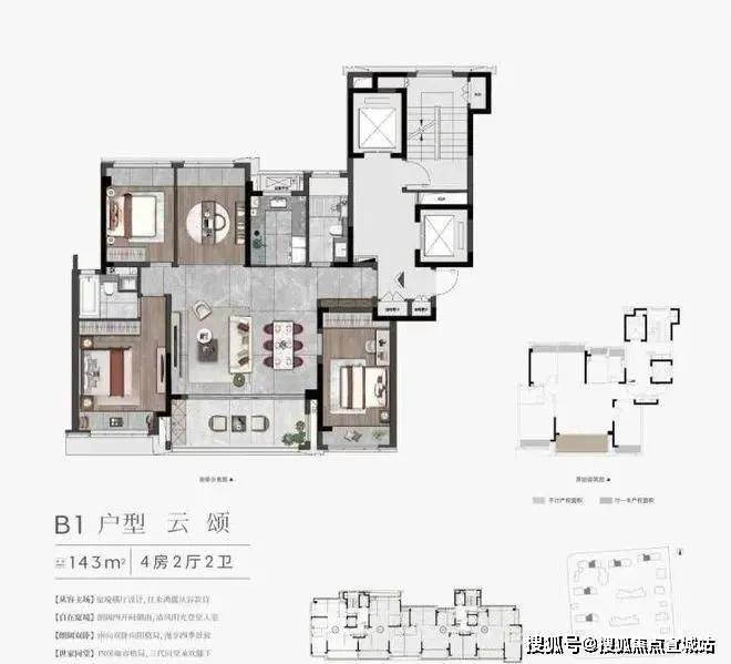户型:4房2厅2卫(125㎡、143㎡)、3+1房2厅3卫(180㎡)