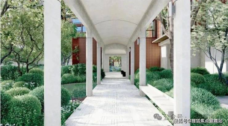 如此一来,每一栋楼的住户都能平等地享受社区会所资源,这种空间结构与“民主人居”的思路不谋而合,堪称先锋布局。渡边智昭先生延续其静谧而高贵的美学,以匠心和艺术灵魂雕塑会所,如一座线性艺术馆,于架空廊下蜿蜒展开,移步换景,在泛会所廊下延展、开合,如东方园林里游园的韵味在空间中浮现。