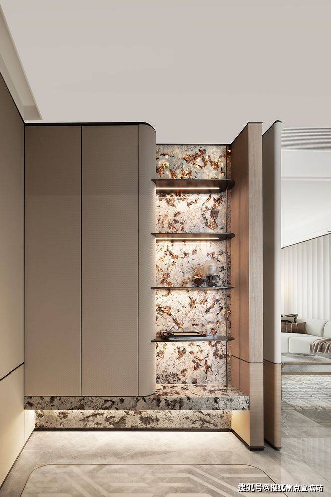 波光水影,往来豁然。玄关在方圆之间,提点生活的包容之态。