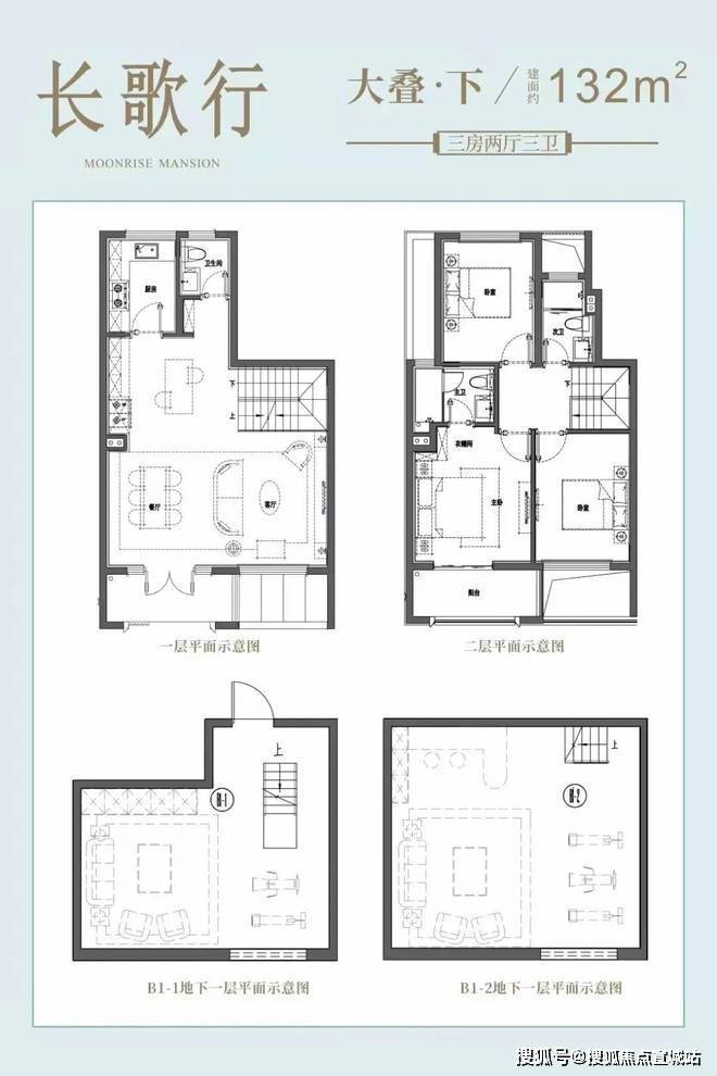 合院(毛坯):附带40-100㎡花园&地下室(层高5.3m),三楼有近15㎡露台。