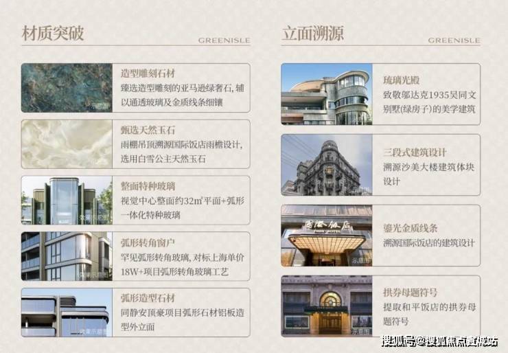 项目的建筑立面:巴西进口亚马逊绿奢石、弧角玻璃和铝板,这样颠覆性的组合在外环别墅项目中,可以说是非常少见的存在!