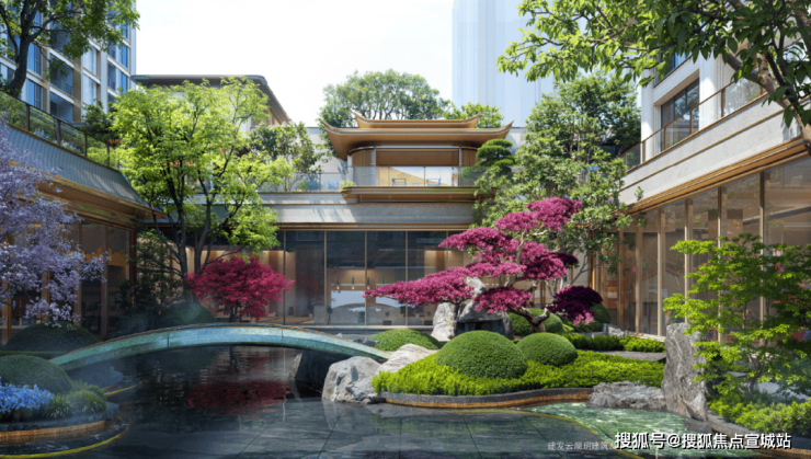 建发·云湖玥打破了传统社区的营造方式,通过约5.4米“全域抬板”的超级底盘设计,将社区垂直分为全域基座、浮岛花园、云上洋房三重境域。
