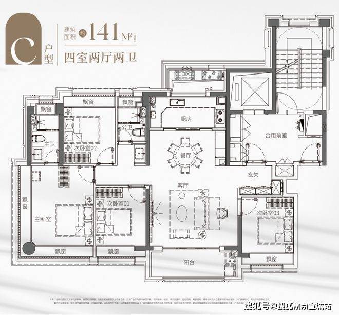全屋足足四个飘窗设计,带来更多的采光和更好的通风,让你无需羡慕老洋房的采光。