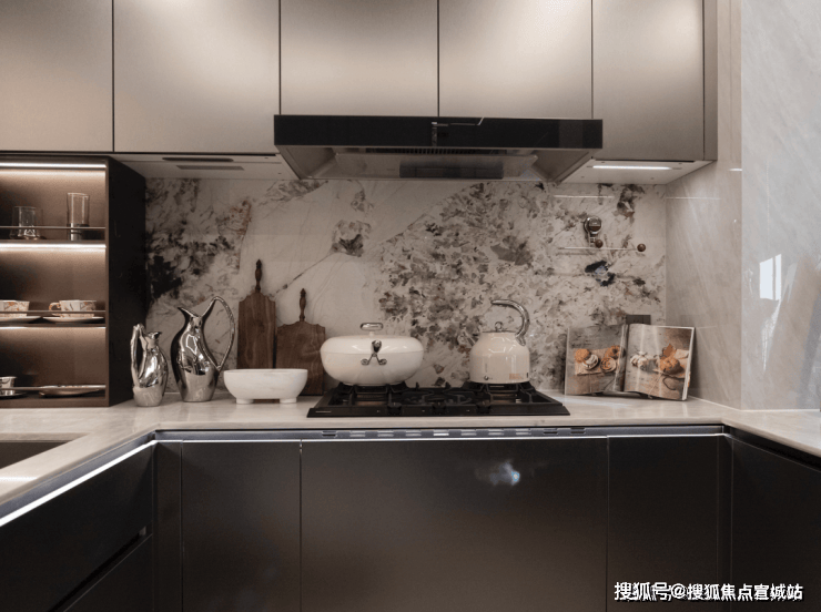比如说餐边柜+操作台+洗手台一体化设置,让这个空间不再单独的满足于简单的吃饭、客厅休憩。